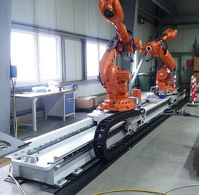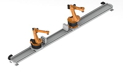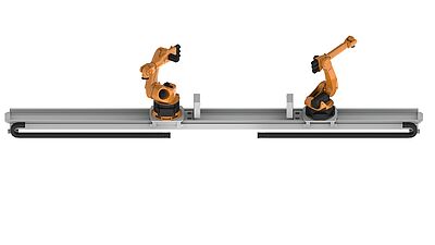 Die Roboterverfahrachsen von Krüger Industrieautomation sind von robuster Konstruktion und für die Hersteller Kuka und ABB einsetzbar.